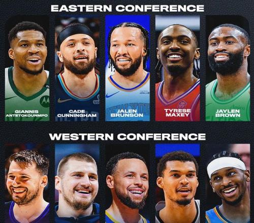 距離2026年洛杉磯全明星周末不足一個月,NBA聯盟官方率先公布了本屆全明星首發陣容,具體如下:西部全明星首發——東契奇+約基奇+亞歷山大+庫里+文班亞馬,東部全明星首發——字母哥+布倫森+馬克西+康寧漢姆+杰倫布朗。長江后浪推前浪,一代新人換舊人,這套全明星首發陣容包含老中青三代球星,有東契奇、約基奇、庫里、字母哥等全明星首發常客,也有杰倫布朗、馬克西、文班亞馬和康寧漢姆等全明星首發新面孔,可謂是星光璀璨,相得益彰。
