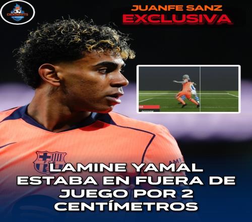 據西班牙六臺獨家獲悉,技術認定亞馬爾越位了2厘米。