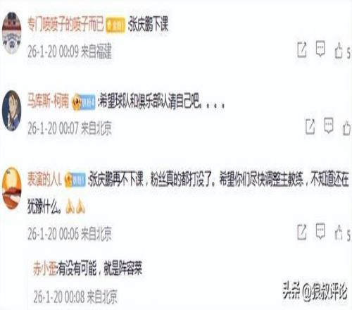 有球迷在官媒點評說道:“張慶鵬再不下課,粉絲真的都打沒了。希望你們盡快調整主教練,不知道還在猶豫什么。”