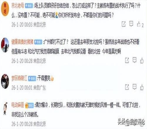不少球迷并不滿意北控新賽季的表現,特別是張慶鵬對于球隊的掌控,顯然遠遠沒有達到較高的話語權。