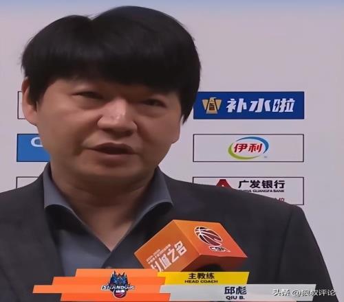 山東主帥邱彪和球員代表高詩(shī)巖接受媒體采訪。