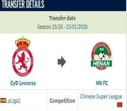 德轉顯示,西乙萊昂文體邊鋒姆布拉加盟河南隊的轉會費為20萬歐。姆布拉現年26歲,司職邊鋒,曾入選西班牙青年隊,出...