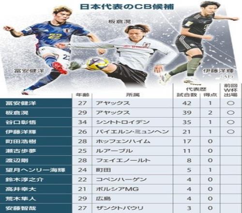 競爭激烈!日媒列日本隊世界杯名單中衛候選:富安健洋等12人在列